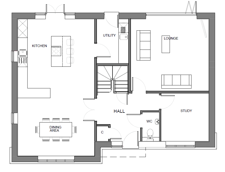 Five-bedroom home set over two floors. This plot enjoys a generous garden space and is finished in a traditional style brickwork with white weatherboard gable. porch and complementary detailing.